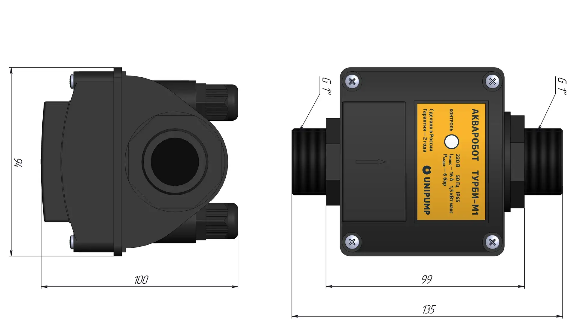 Устройство ТУРБИ-М2 (далее по тексту – «ТУРБИ-М2», «Блок», «Устройство», «Изделие») предназначено для автоматического управления однофазными насосами мощностью до 1,5 кВт по потоку жидкости и по давлению в системе. Устройство выпускается в четырех модификациях с фиксированными значениями давления включения и выключения насоса: 1,5 - 3,0 бара, 2,0 - 3,5 бара, 2,5 - 4,0 бара, 3,0 - 4,5 бар.