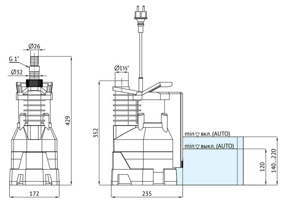 управление: встроенный поплавковый выключатель*;