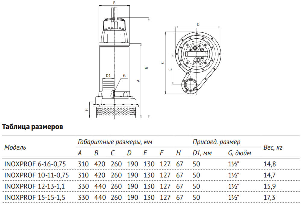 Дренажный насос INOXPROF 12-13-1,1
