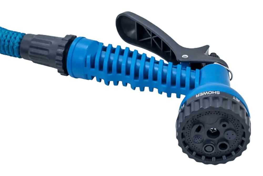 Оснащён резьбовыми соединителями и распылителем с семью режимами работы.