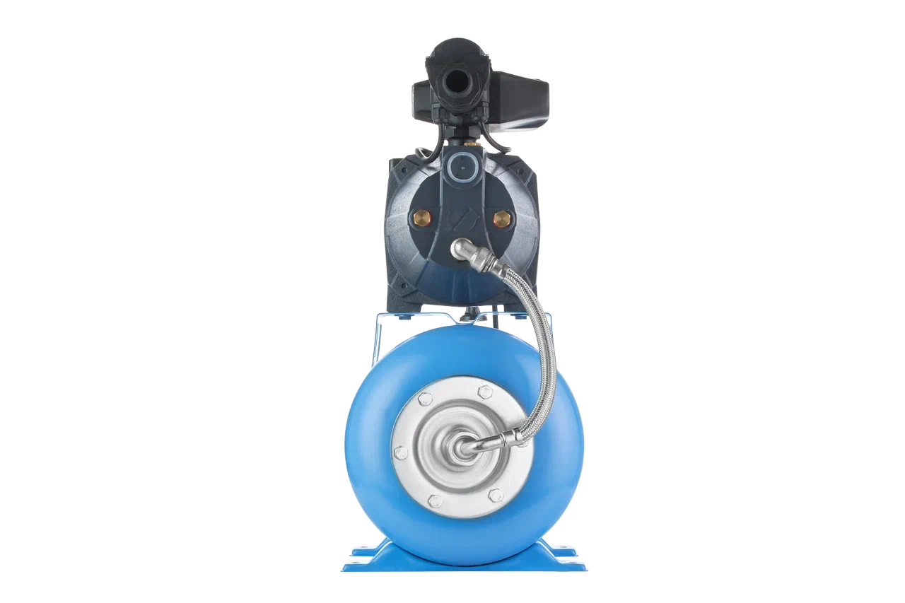 Насосные станции АКВАРОБОТ JET L универсальная собирается на базе поверхностных насосов, оснащены стальным гидроаккумулятором объемом 24 л, реле давления PM/5-3W со встроенным манометром и блоком управления АКВАРОБОТ ТУРБИ.