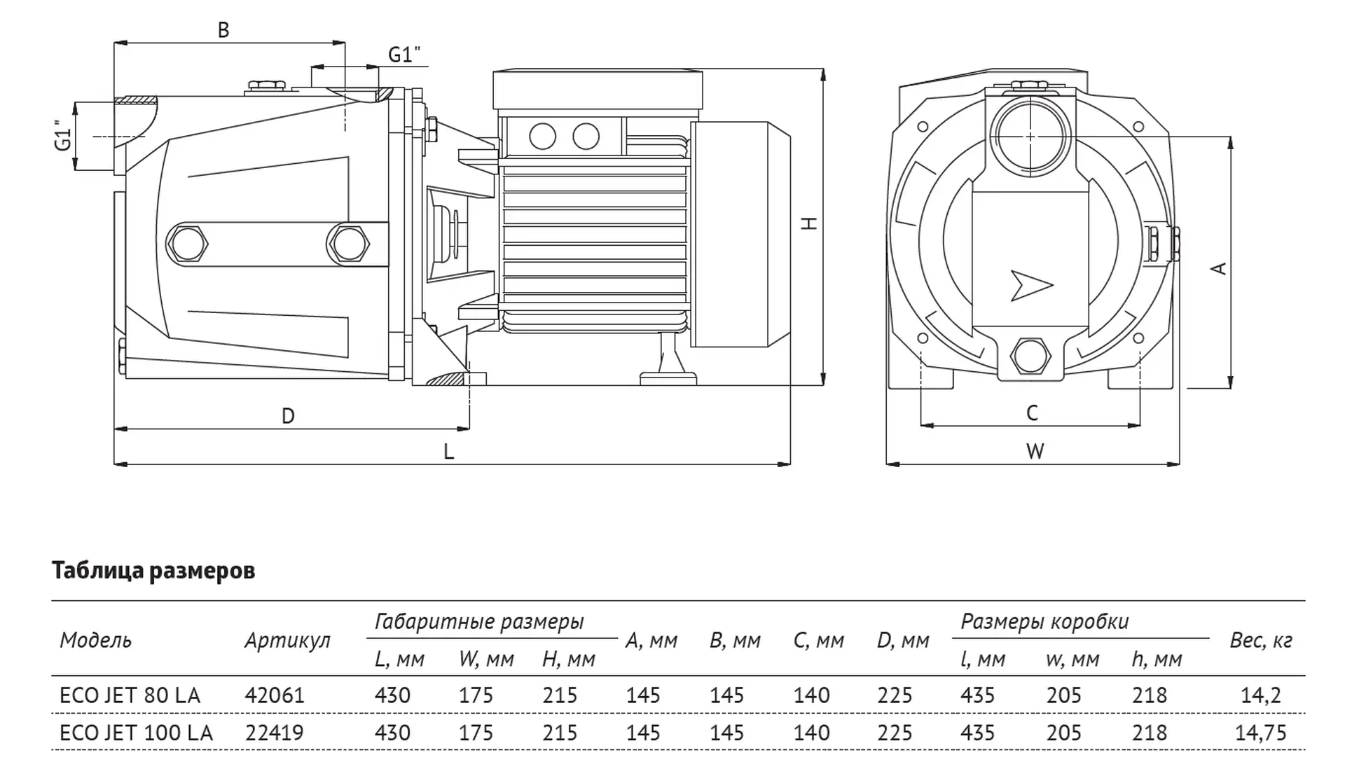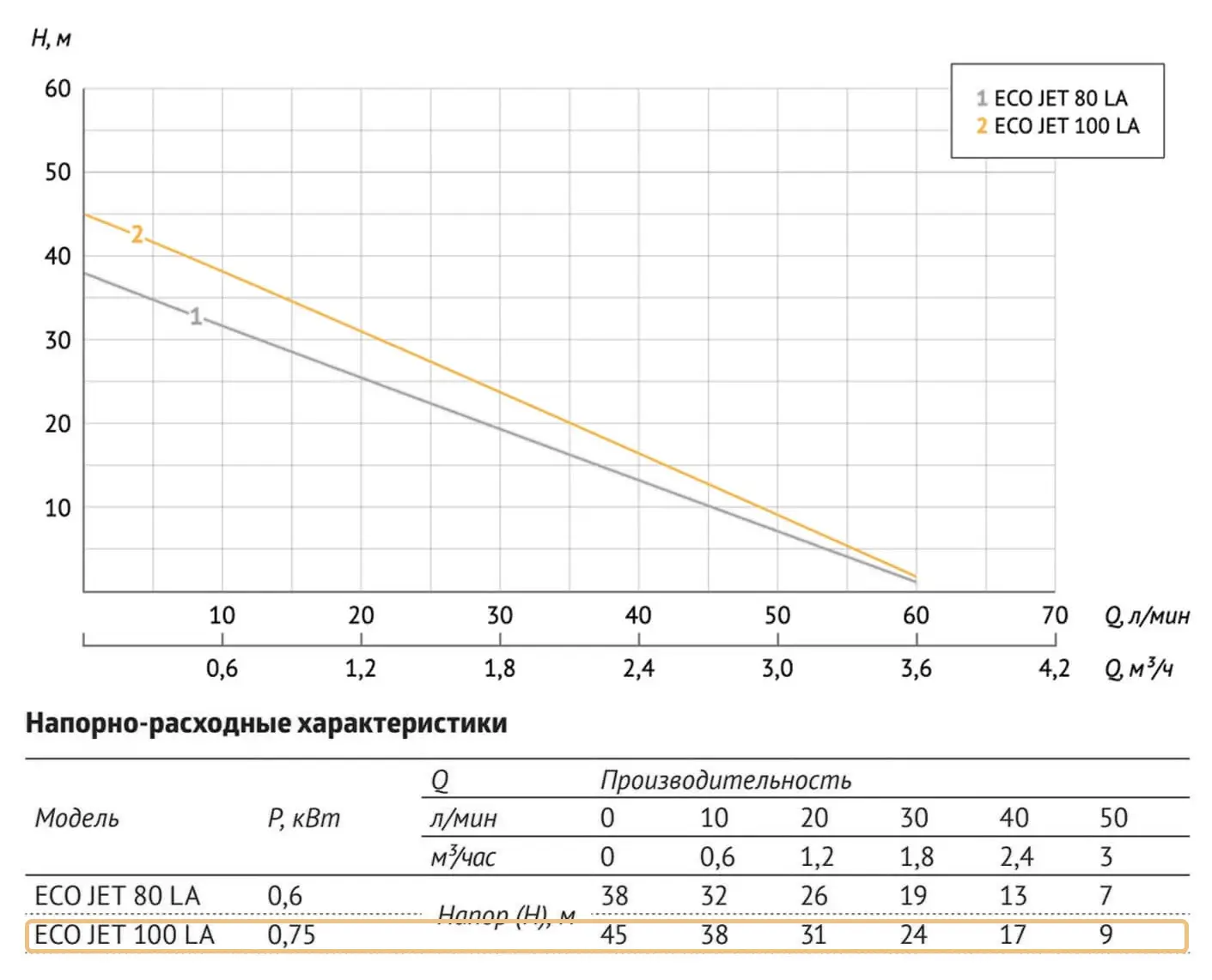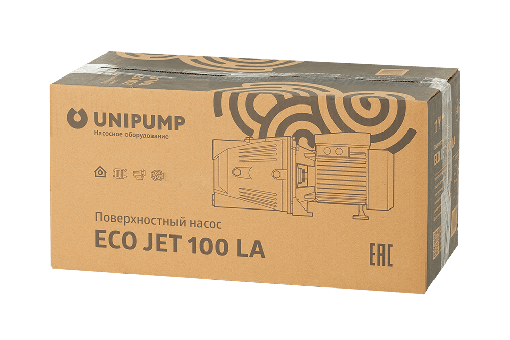 Поверхностный насос UNIPUMP ECO JET 100 LA - однофазный одноступенчатый центробежный поверхностный насос судлиненным эжектором, чугунным корпусом,рабочим колесом из поликарбоната, алюминиевой обмоткой статора для подачи чистой холодной воды из скважин и колодцев (глубиной не более 8 метров), открытых водоемов, резервуаров и других источников водоснабжения.