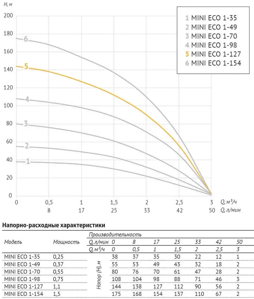 Погружной насос 3" MINI ECO 1-127 (1,1 кВт, 50 м)