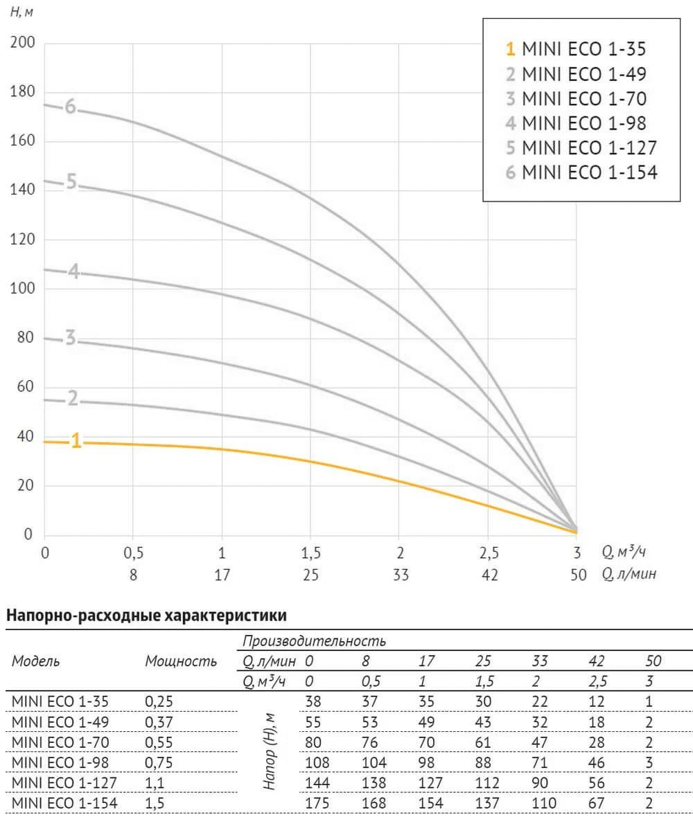 Погружной насос 3" MINI ECO 1-35 (0,25 кВТ, 20 м)