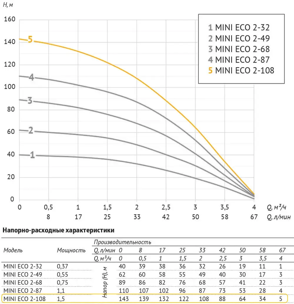 Погружной насос 3" MINI ECO 2-108 (1,5 кВт, 50 м)