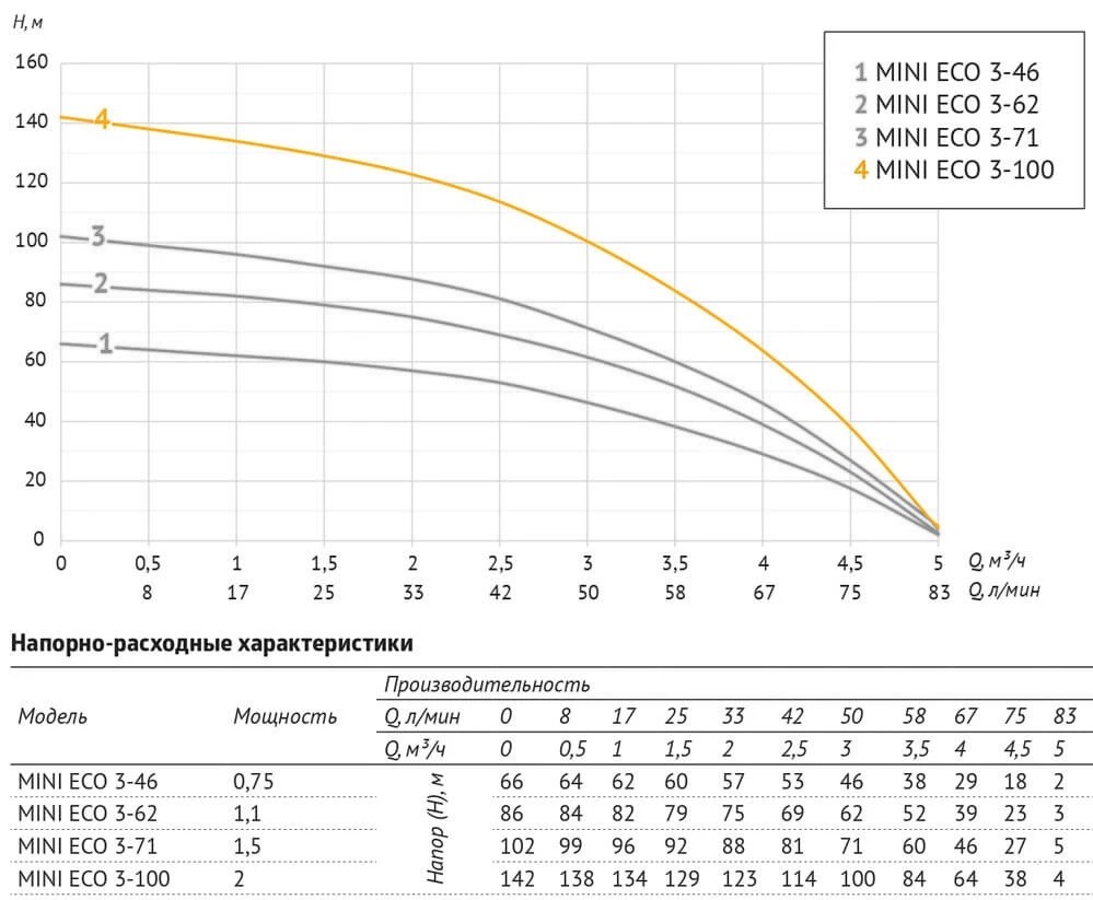 Погружные скважинные насосы серии MINI ЕСО — предназначены для подачи чистой холодной воды из скважин диаметром не менее 85 мм (внутренний диаметр обсадной трубы), глубоких колодцев и открытых водоемов.