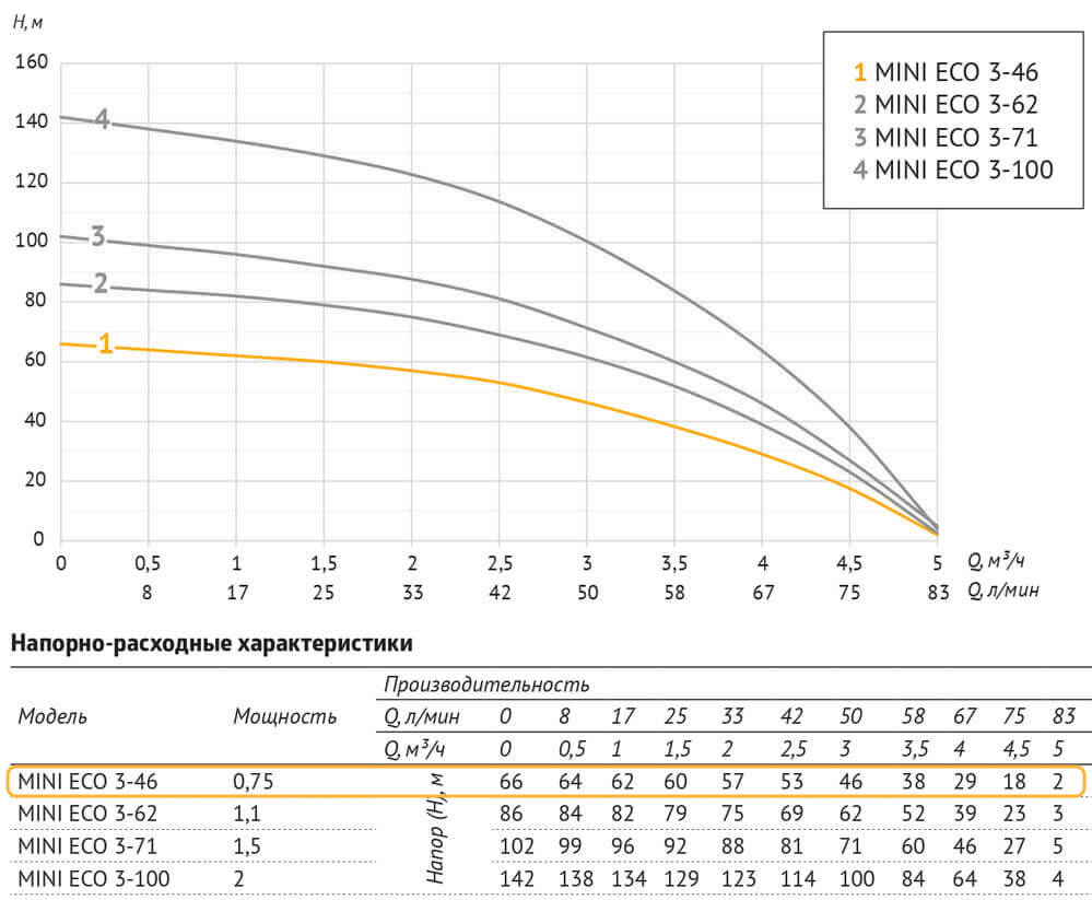 Погружной насос 3" MINI ECO 3-46 (0,75 кВт, 40 м)