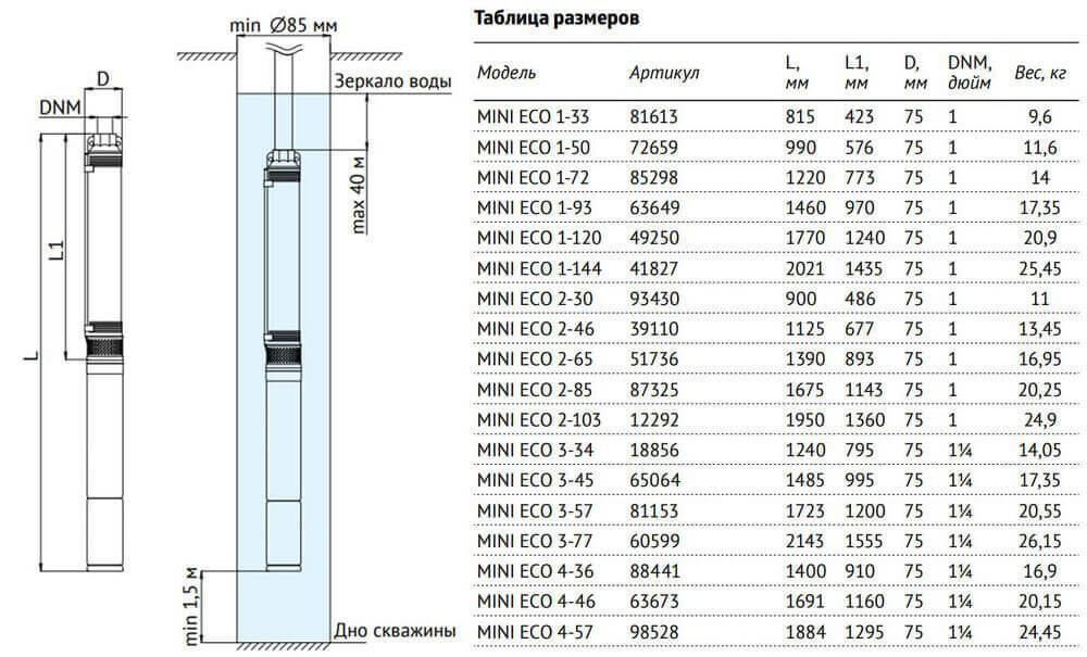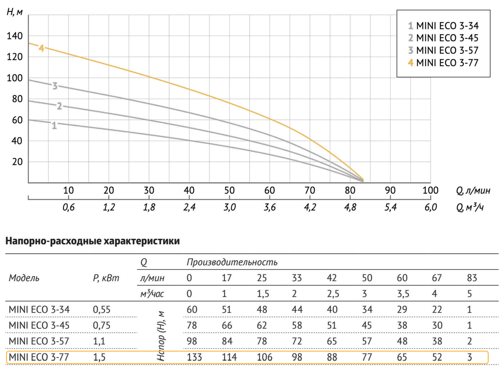 Погружной насос 3" MINI ECO 3-77 (1500 Вт, кабель-50м)