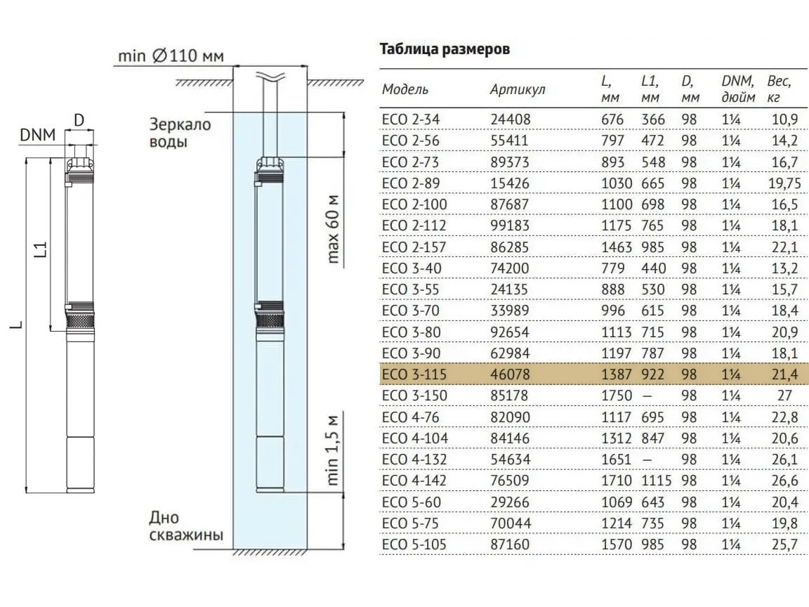 Погружной насос 4" ECO 3-115 (2,2 кВт,1 м), шт