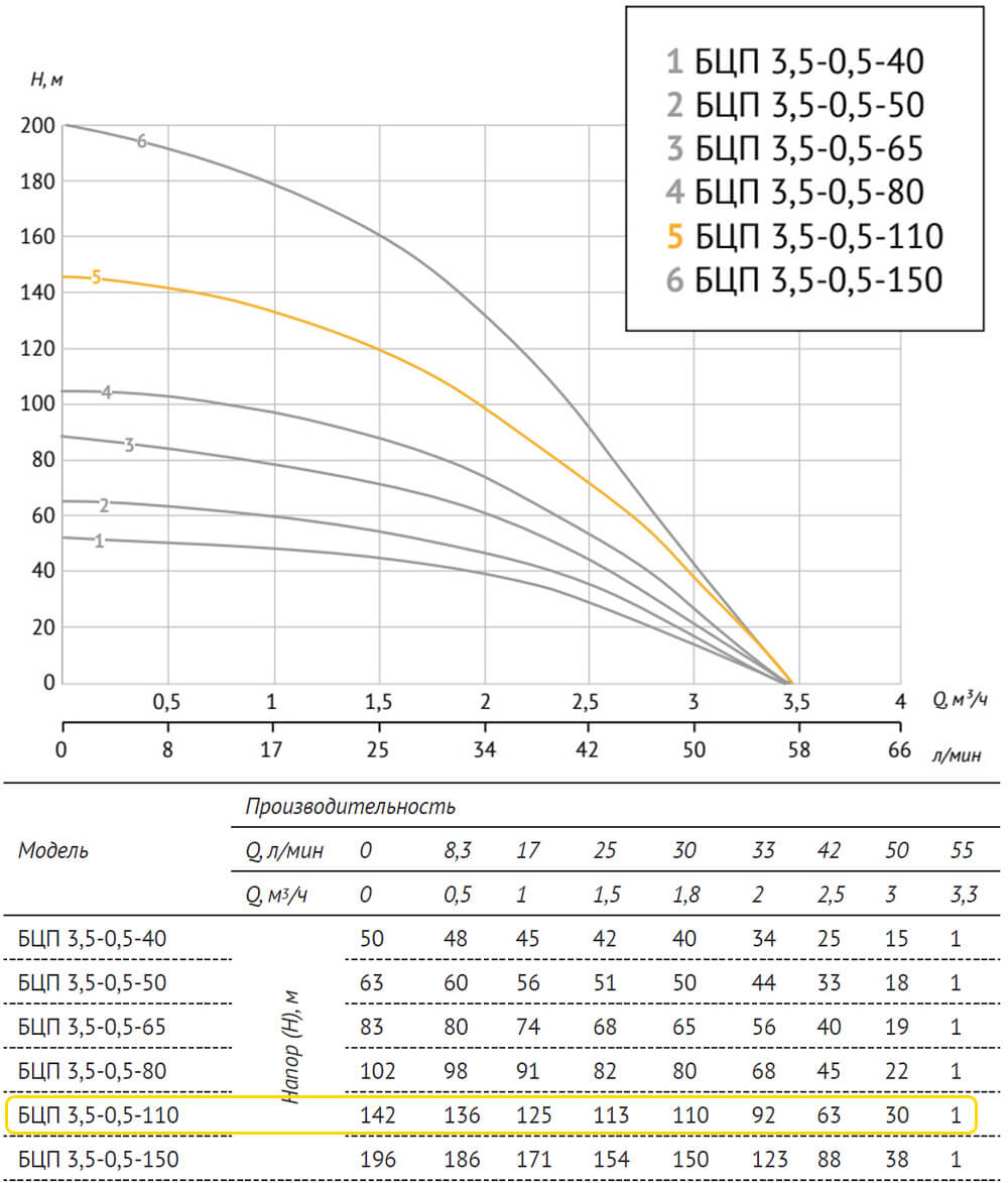 Погружной насос БЦП 3,5-0,5-110 (1300 Вт,1 м) ном Q1,8 м³/ч-110