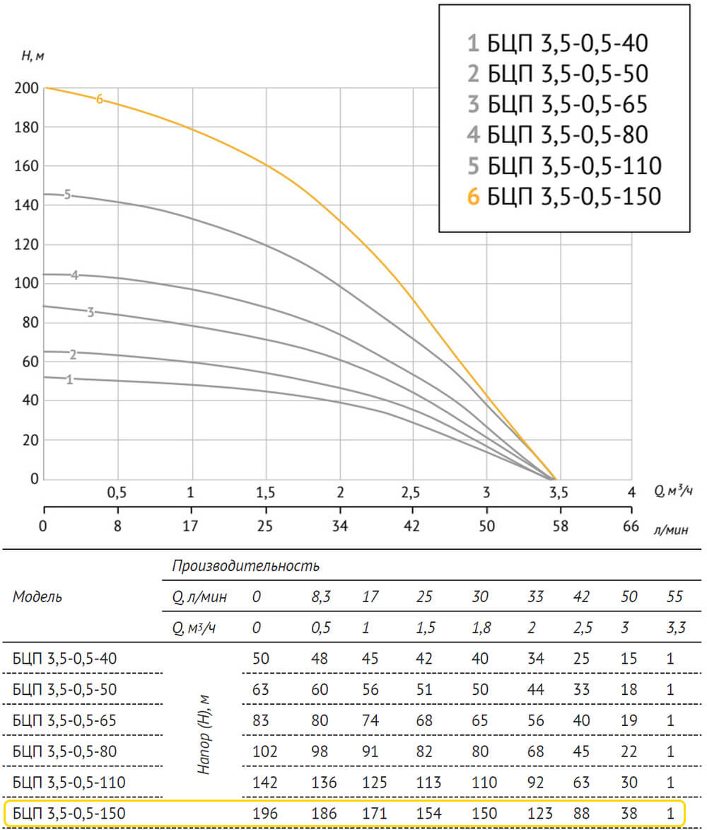 Погружной насос БЦП 3,5-0,5-150 (1800 Вт,1 м) ном Q1,8 м³/ч-150