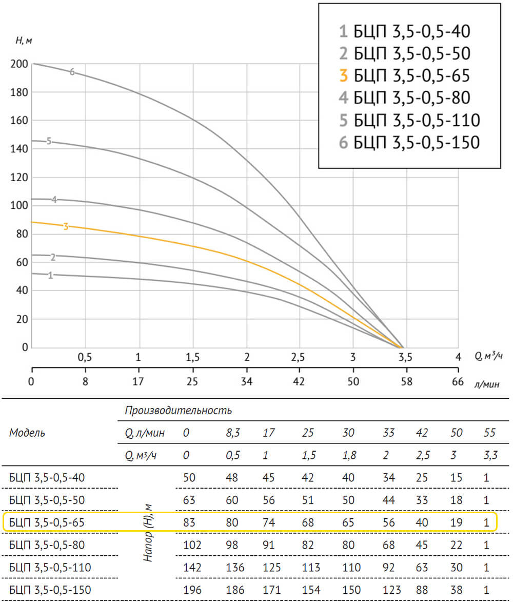 Погружной насос БЦП 3,5-0,5-65 В (750 Вт,45 м с вилкой) ном Q1,8 м³/ч-65