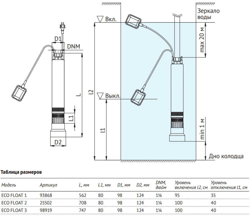 Погружные колодезные насосы UNIPUMP серии ECO FLOAT — с поплавковым выключателем предназначены для бытового использования и применяются для подачи чистой пресной воды из колодцев, различных баков и резервуаров, открытых водоемов в автоматическом режиме.
