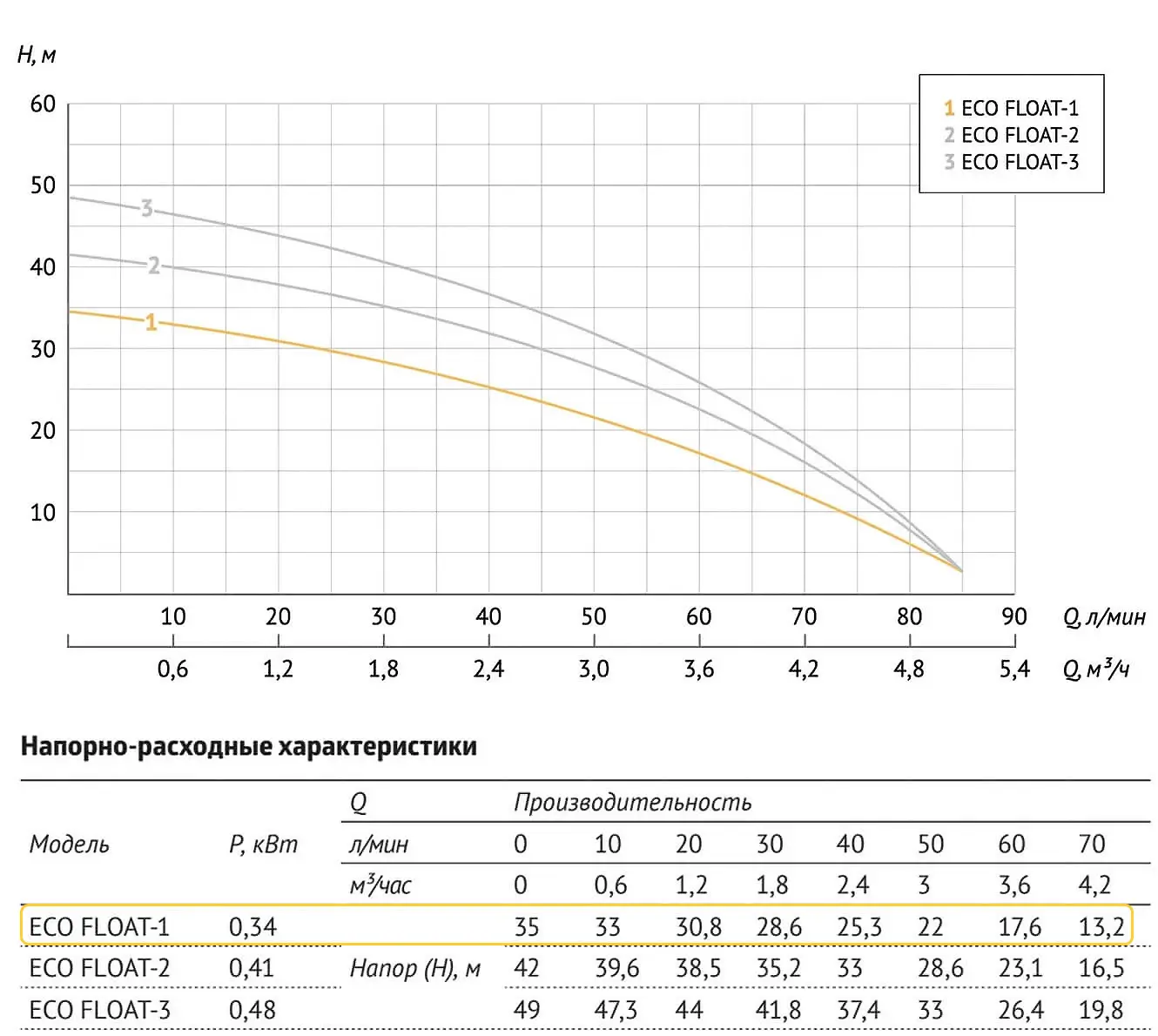 Погружной насос ECO FLOAT-1 с попл. выкл., 340Вт