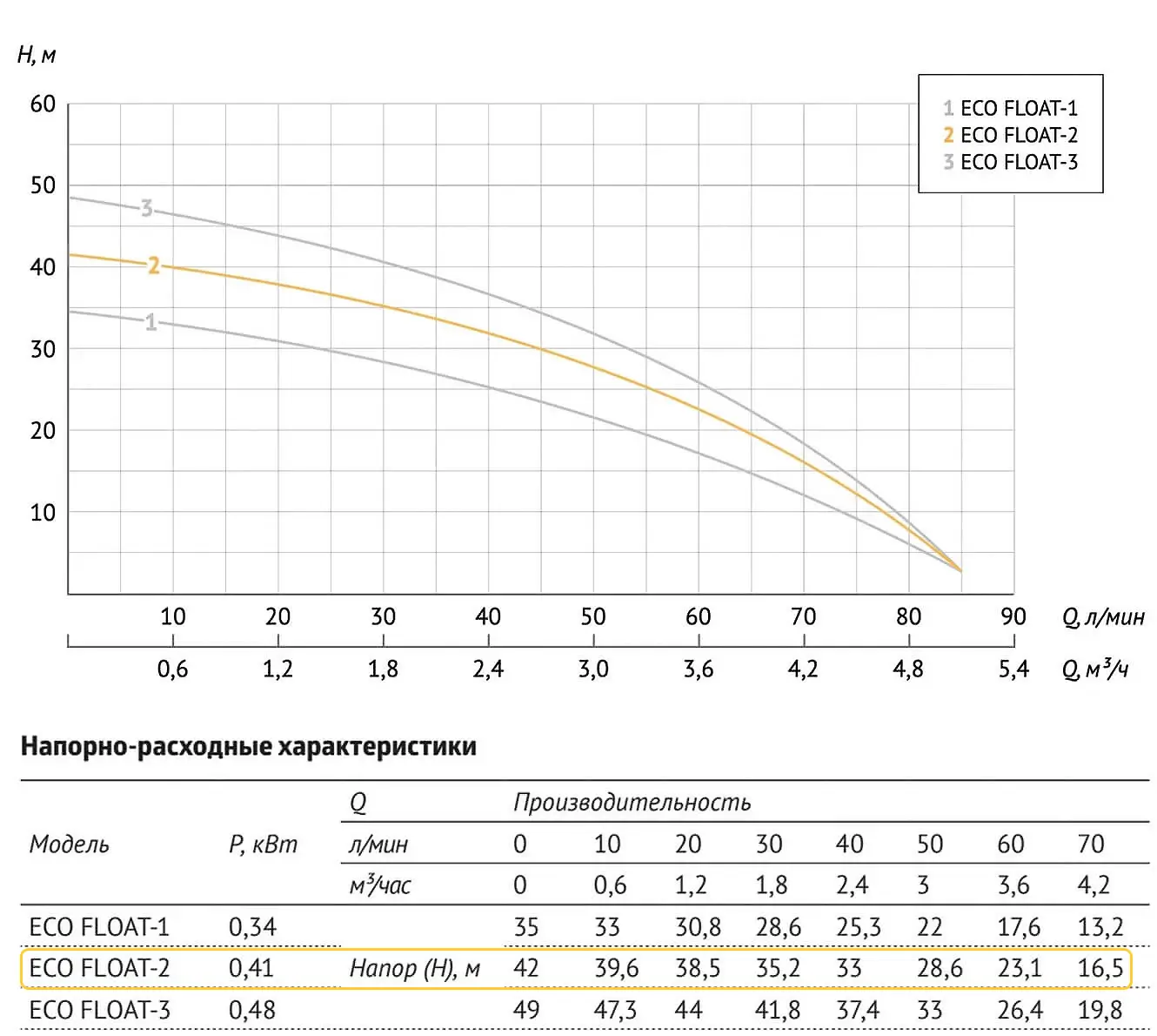 Погружной насос ECO FLOAT-2 с попл. выкл., 410Вт