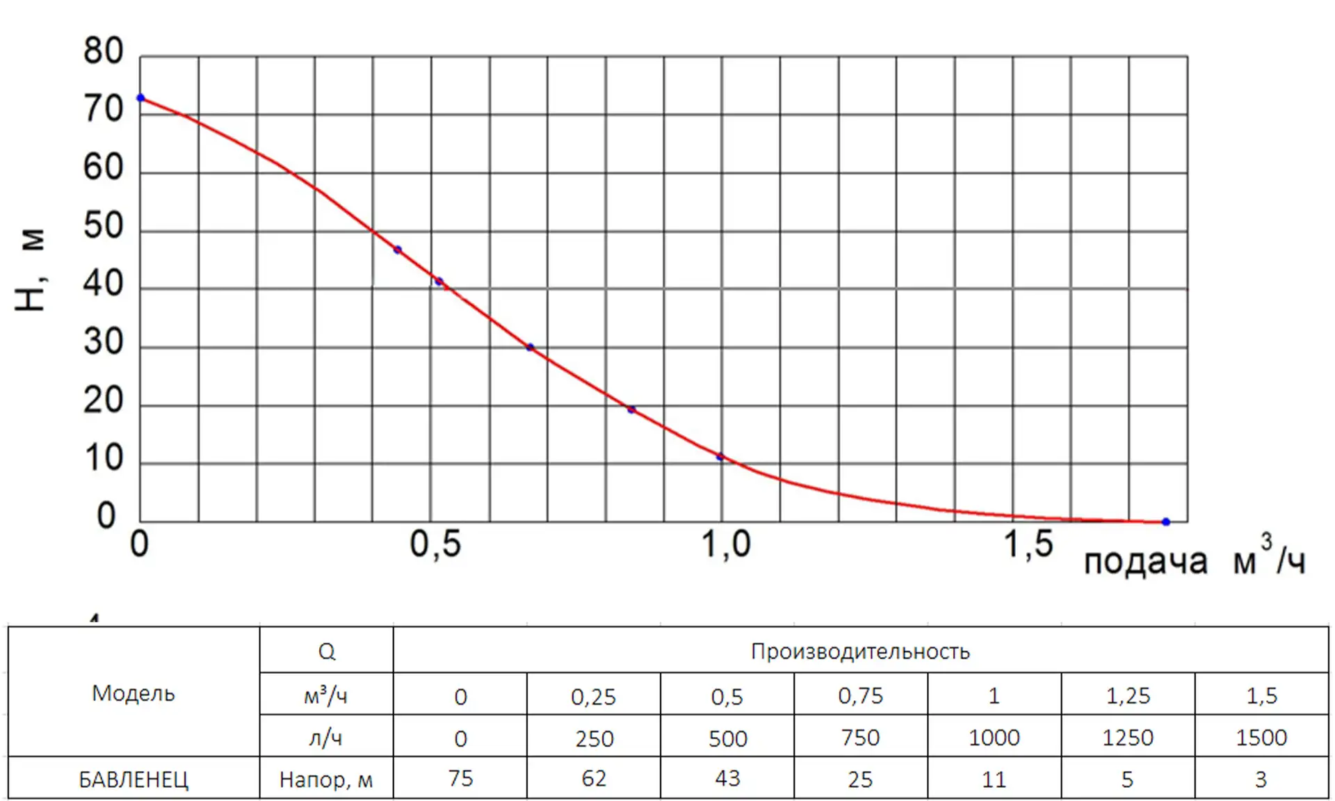 Примечание:Номинальная объемная подача воды для насосов «БАВЛЕНЕЦ», «БАВЛЕНЕЦ М» — 432 л/ч, остальные показатели объемной подачи воды — справочные.